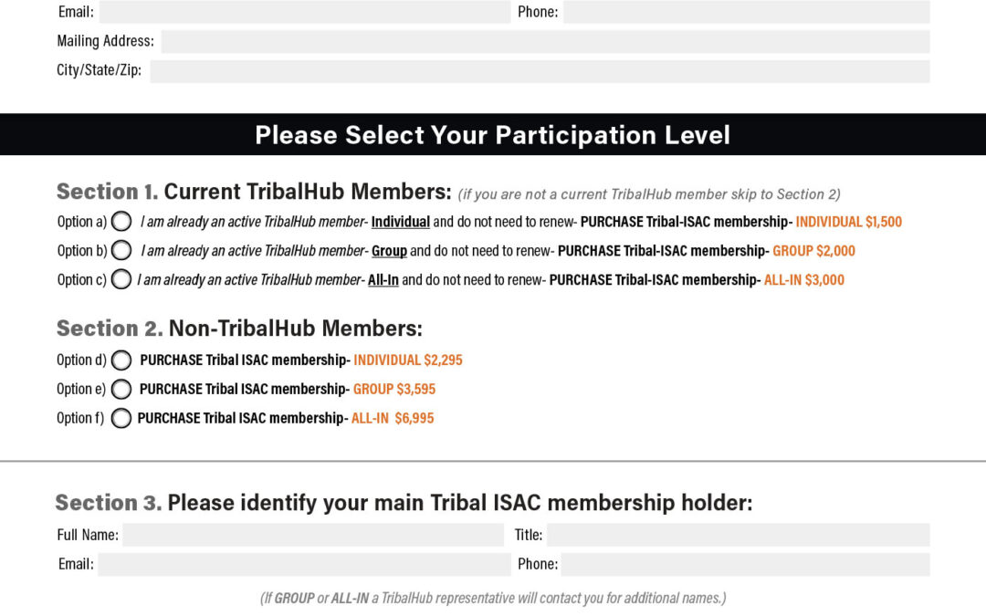 Tribal ISAC 2021, Interactive Form, Membership Sign Up by brittany | Jan 20, 2022 | 0 comments Submit a Comment Cancel replyYour email address will not be published. Required fields are marked *Comment * Name * Email * Website Save my name, email, and website in this browser for the next time I comment. Δ